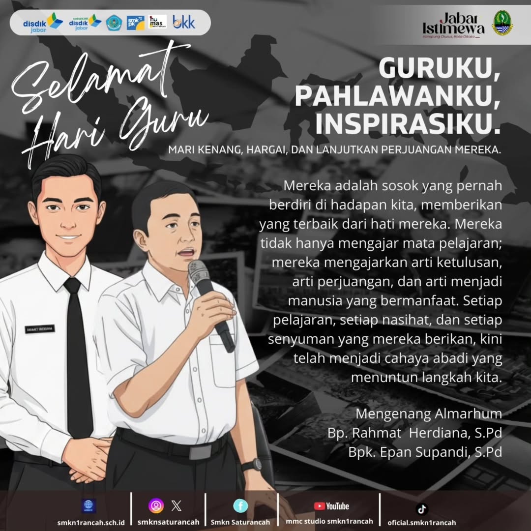 Dalam suasana peringatan Hari Guru Nasional, keluarga besar SMK Negeri 1 Rancah tidak hanya merayakan peran mulia para pendidik, tetapi juga mengenang dengan penuh haru sosok guru-guru terbaik yang pernah membersamai perjalanan pendidikan di sekolah tercinta.